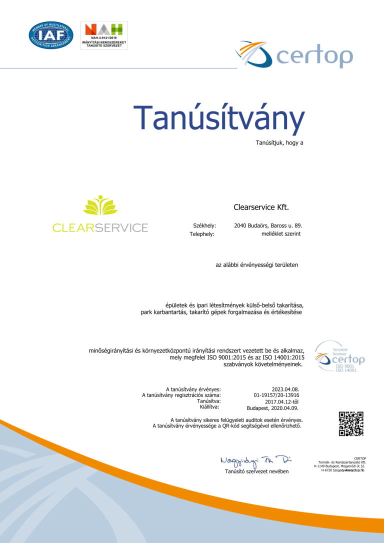 Magas színvonalú szolgáltatásunkat az is mutatja, hogy rendelkezünk ISO tanúsítvánnyal, mely teljes mértékben igazolja, hogy szigorú előírásoknak és szabványoknak fele meg működésünk.